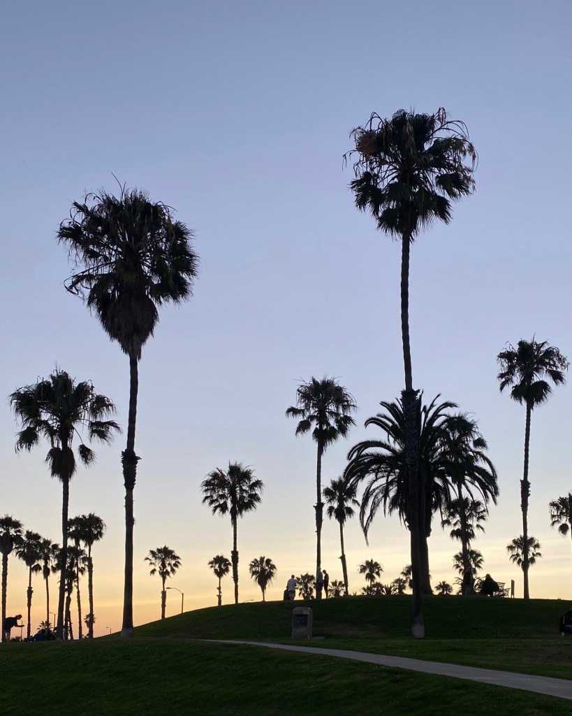 The restaurant was located not far from the coast. After finishing my dinner, I took a leisurely stroll to the beach, feeling the sea breeze. The swaying olive trees and the orange-hued sky, painted by the sunset, created the iconic scenery of Santa Monica.